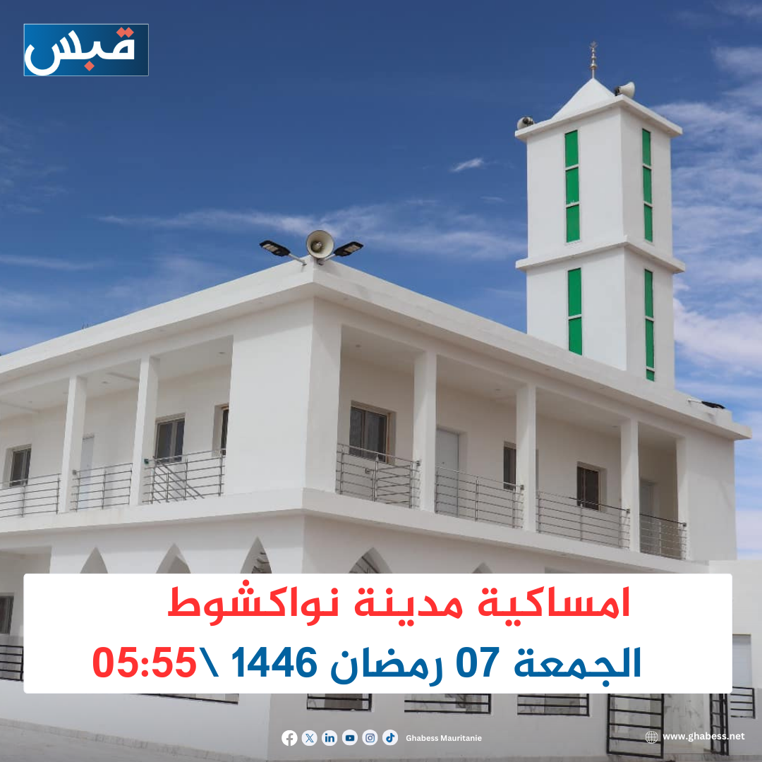 امساكية مدينة نواكشوط ،الجمعة 07 رمضان 1446