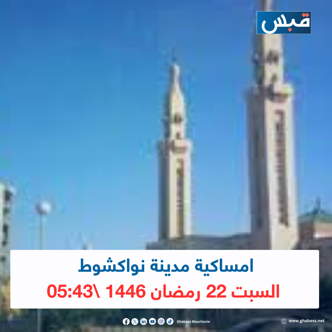 امساكية مدينة نواكشوط ،السبت 22 رمضان 1446