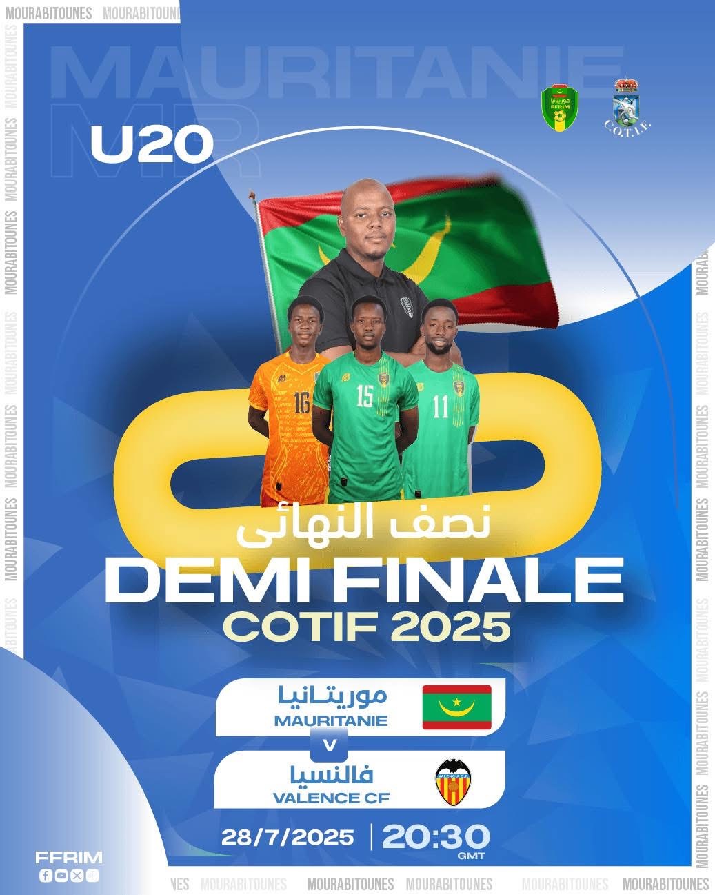 يواجه فريق المرابطون تحت 20 عاماً، نادي فالنسيا الإسباني،في نصف نهائي بطولة كوتيف الدولية 2025.