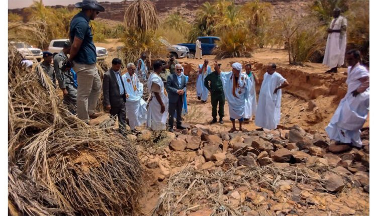 عاين والي آدرار عبد الله ولد محمد محمود، وضعية الطريق الرملية، التي تشق قرية تيزنت، واستمع إلى المشاكل المطروحة من طرف الساكنة، بما فيها توفير الإنارة الكهربائية وتمهيد الطريق الرابط بين القرية وتيارت.