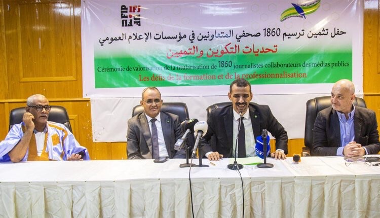 نظمت رابطة الصحفيين الموريتانيين بالتعاون مع الاتحاد الدولي للصحفيين، أمس السبت في نواكشوط، حفلا احتفت المؤسستان من خلاله بقرار تسوية وضعية 1860 متعاونًا في مؤسسات الإعلام العمومي في موريتانيا بحضور رئيس السلطة العليا للصحافة والسمعيات البصرية، وعدد من الإعلاميين والناشطين في المجال.