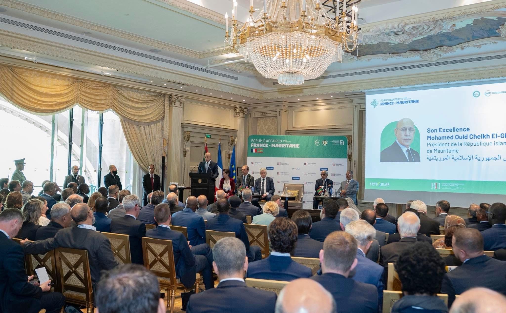 وأشار إلى طموح موريتانيا للتحول إلى قطب إقليمي في مجالات الإنتاج والخدمات، مؤكداً انفتاح موريتانيا على إقامة شراكات مبتكرة، خاصة مع الشركات الفرنسية المعروفة بخبرتها وقدرتها التنافسية.