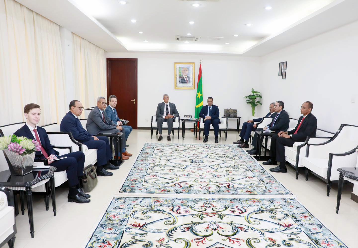 وجرى اللقاء بحضور وزير المعادن والصناعة، ادي ولد الزين، و مدير ديوان الوزير الأول، الشيخ ولد زيدان، إلى جانب مستشار الوزير الأول المكلف