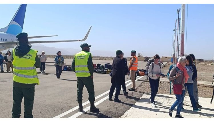 حطت صباح اليوم السبت في مطار أطار الدولي (شمالي موريتانيا)، الرحلة السابعة من الموسم السياحي 2024-2025 في موريتانيا، قادمة من فرنسا، وبلغ عدد ركاب الرحلة (110) سائحا من مختلف الجنسيات الأوروبية.