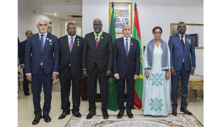 وشح رئيس الجمهورية، محمد ولد الشيخ الغزواني، أمس السبت، في مقر السفارة الموريتانية في أديس أبابا (أثيوبيا)، رئيس مفوضية الاتحاد الإفريقي، المنتهية ولايته موسى فكي محمد.