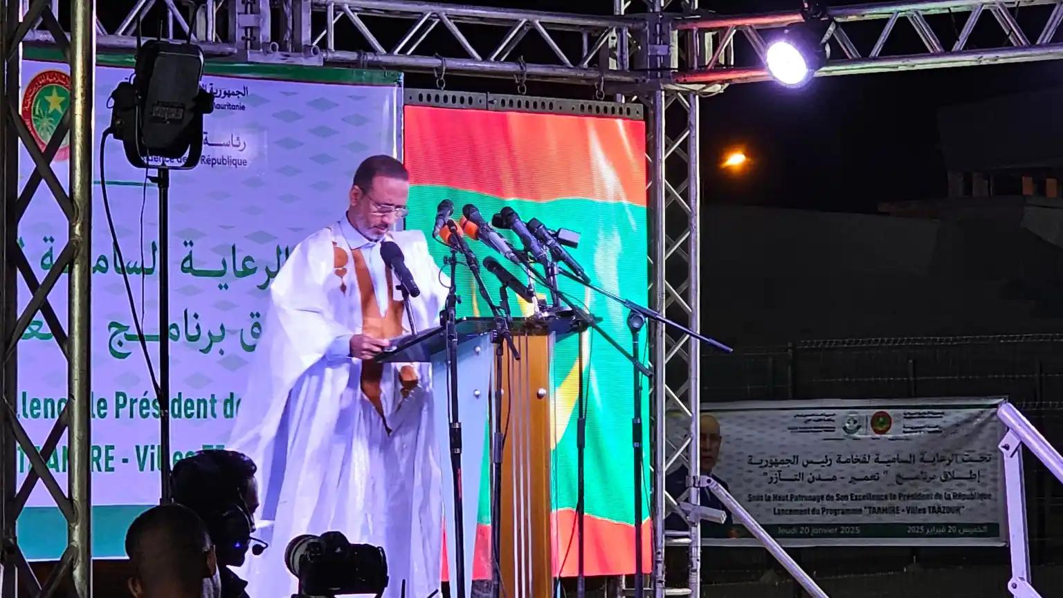 جاء ذلك خلال حفل إطلاق برنامج “تعمير ـ مدن تآزر” ليل الخميس/الجمعة؛ بحضور غزواني.
